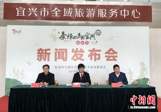 A news conference is held in Yixing to announce the opening of 2018 "Tea and Zen Cultural Experience Journey to Yixing" tourism event.[Photo/js.chinanews.com] |