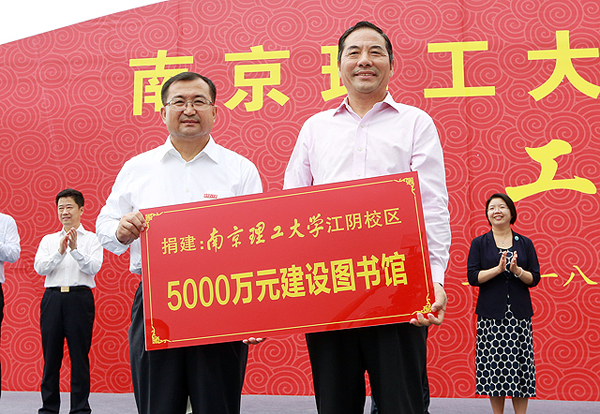 During the ceremony, Changjiang town of Jiangyin donated 20 million yuan ($3 million) for the gymnasium, while Shen Da Group supported the construction of the school library with 50 million yuan.